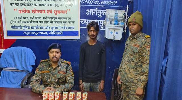 इधर रघुनाथपुर पुलिस ने 5000 के ईनामी बदमाश को वदेशी शराब के साथ पकड़ा गया। पुलिस ने रघुनाथपुर के रौशन कुमार को पकड़ा है। नगर थाना में इसके विरुद्ध लूटपाट मामले में प्राथमिकी दर्ज है।