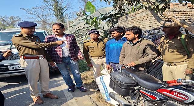 पूर्वी चंपारण में नशा तस्करों के खिलाफ पुलिस ने एक बार फिर अपना शिकंजा कस दिया है। पहाड़पुर-अरेराज मुख्य मार्ग पर गश्ती के दौरान पुलिस और प्रशासनिक टीम ने तत्परता दिखाते हुए भारी मात्रा में अवैध मादक पदार्थ बरामद करने में सफलता हासिल की है। इस सघन अभियान के दौरान पुलिस ने एक संदिग्ध बाइक को रोककर जब उसकी तलाशी ली, तो उसमें छिपाकर रखा गया 15.8 किलोग्राम अवैध गांजा बरामद हुआ। इस बड़ी खेप के साथ ही पुलिस ने मौके से दो तस्करों को रंगे हाथों दबोच लिया, जिनकी पहचान सरेया मुनिया टोला निवासी सूरज कुमार और राज कुमार के रूप में की गई है।