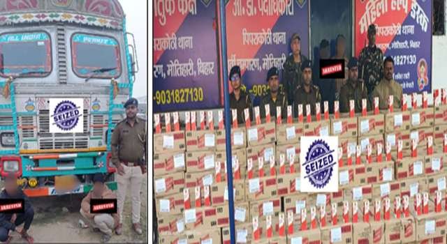घेराबन्दी कर विधिवत जॉच की गई, तो जाँच के क्रम में ट्रक के चालक सीट के पास बने केविन के तहखाने में छिपाकर रखा अंग्रेजी शराब का 143 कार्टून प्रत्येक कार्टून में 48 पीस प्रत्येक 18उस का जिसकी कुल-6864 पीस अंग्रेजी शराब की कुल मात्रा-1235 लीटर 520 मि0ली0 अंग्रेजी शराब बरामद की गई। साथ ही दो व्यक्ति चालक एवं उप चालक को विधिवत गिरफ्तार किया गया। इस संबंध में प्राथमिकी दर्ज कर, अग्रिम कार्रवाई की जा रही है।