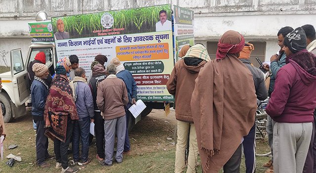 किसान मोबाइल प्रचार वाहन से जानकारी प्राप्त कर रहे है विभाग के क्षेत्रीय पदाधिकारी एवं जनसेवक भी गन्ना किसानो को जानकारी हेतु पंपलेट एवं पत्रक से जानकारी दे रहे है।