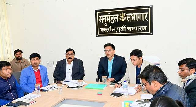 रक्सौल अनुमंडल सभागार में जिलाधिकारी, पूर्वी चम्पारण, सौरभ जोरवाल द्वारा राज्य सरकार द्वारा प्रखंड/अंचल स्तर पर संचालित विभिन्न विभागों- ग्रामीण विकास विभाग, पंचायती राज विभाग, राजस्व एवं भूमि सुधार विभाग की योजनाओं के क्रियान्वयन एवं प्रगति की समीक्षात्मक बैठक की गई। बैठक में अपर समाहर्ता मुकेश कुमार सिंन्हा एवं उप विकास आयुक्त डॉ.प्रदीप कुमार भी उपस्थित थे।
