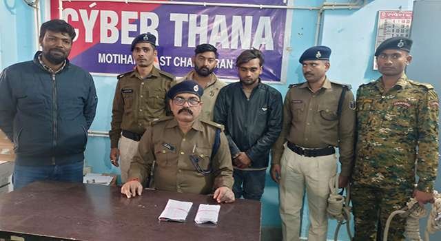 मोतिहारी साइबर थाना पुलिस ने उत्तर प्रदेश के एक व्यवसायी से एक लाख रुपये की ठगी करने वाले साइबर गिरोह के दो सदस्यों को गिरफ्तार कर लिया। दोनों अपराधी रक्सौल क्षेत्र के रहने वाले बताए जाते हैं। इनके पास से एक चारपहिया वाहन, दो मोबाइल फोन, तीन एटीएम कार्ड, तीन पासबुक और चार हस्ताक्षरयुक्त खाली चेक बरामद किए गए हैं।